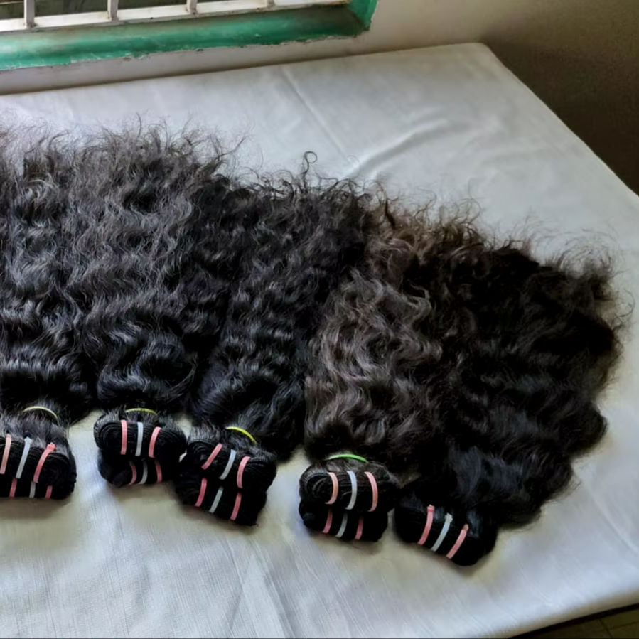 ผมอินเดียแท้แบบเวอร์จิ้นเรมี่ ไม่ผ่านกระบวนการ ขายส่งแบบมัด เย็บด้วยเครื่องจักรแบบดับเบิ้ลเวฟ ผมจากวัดอินเดีย จัดเรียงเกล็ดผมตามธรรมชาติ ลอนธรรมชาติ ลอนหลวม