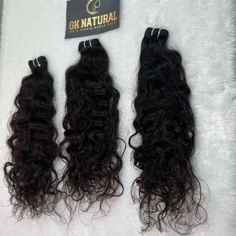ผมต่อผมมนุษย์ม้วนเป็นลอนธรรมชาติสีดำธรรมชาติแบบไม่ผ่านกระบวนการ100% จากอินเดีย