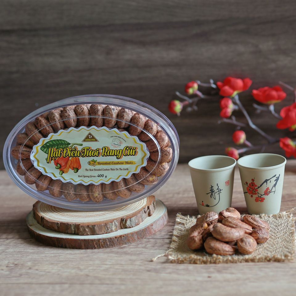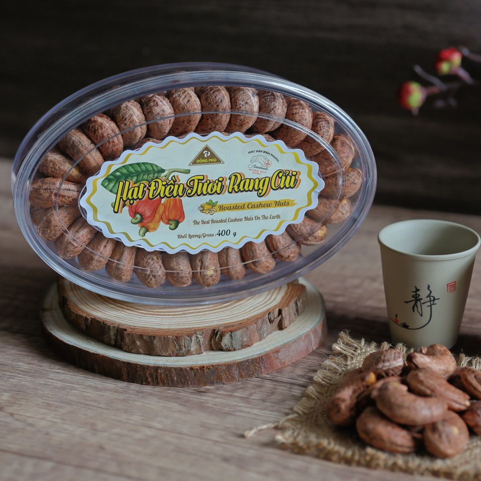 เม็ดมะม่วงหิมพานต์อบเกลือ ไม่ปอกเปลือก คุณภาพพรีเมียม เกรด W180 น้ำหนัก 400 กรัม บรรจุกล่องของขวัญทรงรี พร้อมรับประทาน ขนมเพื่อสุขภาพ - ส่งออกจากเวียดนาม