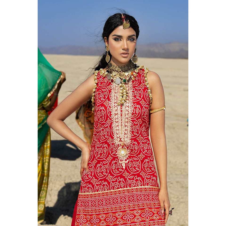 ชุดสูทผ้าลอนปักลายสีแดงสำหรับผู้หญิง แบบยังไม่เย็บติดกัน เหมาะสำหรับใส่ในชีวิตประจำวัน พร้อมการตกแต่งด้วยลายปักที่ประณีต
