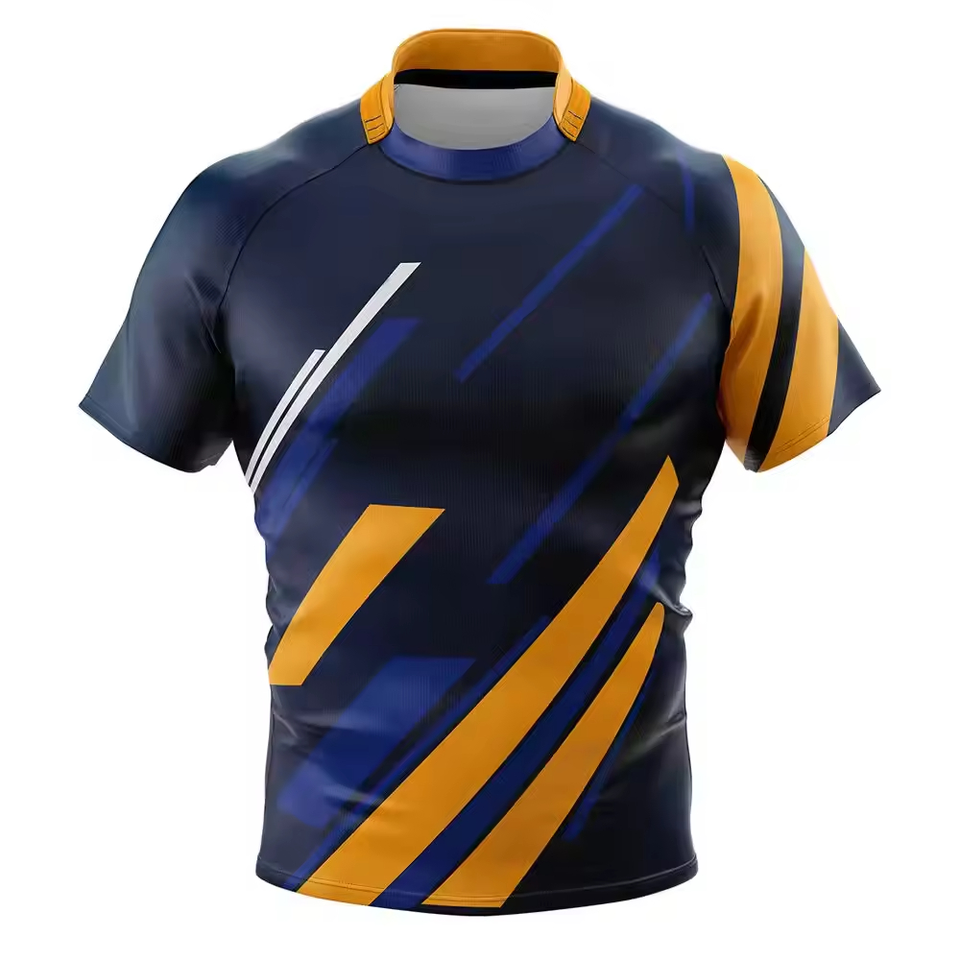 เสื้อรักบี้ประสิทธิภาพสูง ดีไซน์แบบซับลิเมชั่นตามสั่ง ผ้าระบายเหงื่อ โลโก้และชื่อทีม ขายส่งตอนนี้