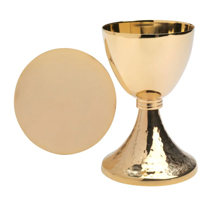 ถ้วยทองเหลืองศักดิ์สิทธิ์ที่ไม่ได้ใช้พร้อม paten สำหรับพิธีทางจิตวิญญาณในโบสถ์สไตล์โบราณโดยผู้ค้าส่งชั้นนำในอินเดีย