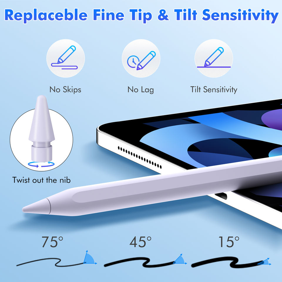 ปากกาสไตลัส Uogic รุ่นที่ 2 แบบแอคทีฟ พร้อมแม่เหล็กดูดติด ป้องกันการสัมผัสโดยฝ่ามือ รองรับการเอียง หัวปากกาเปลี่ยนได้ สำหรับ iPad ปี 2018 ขึ้นไป