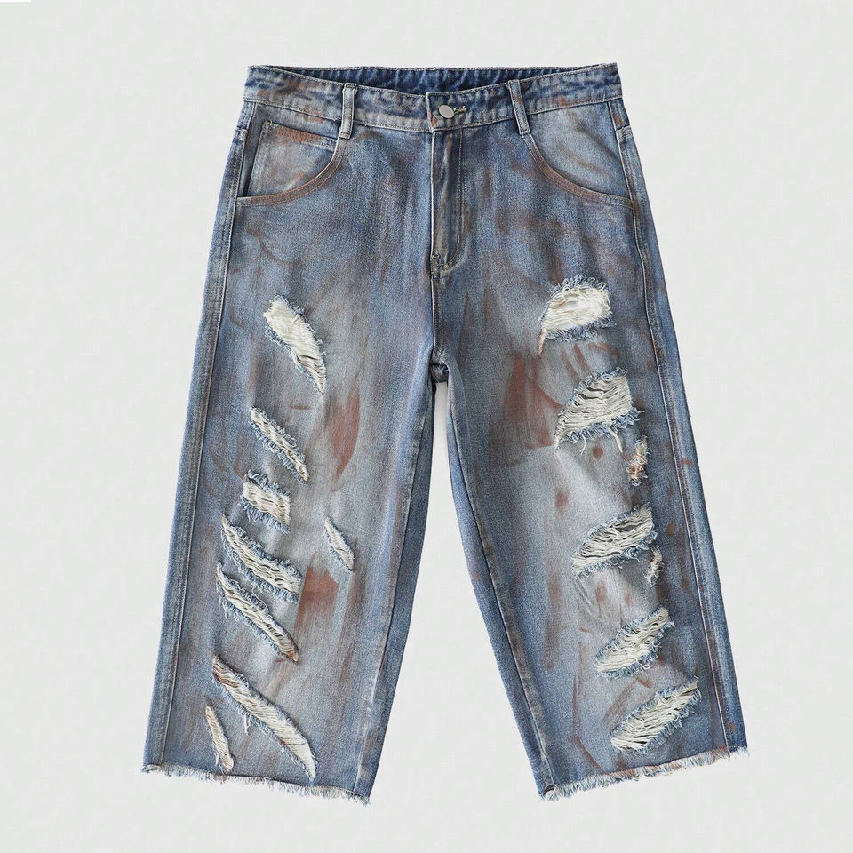 กางเกงยีนส์ขาสั้นแบบทำสีซีดสไตล์วินเทจ ผ้าเดนิมหนา 100% คอตตอน สำหรับทุกเพศ ขายส่ง