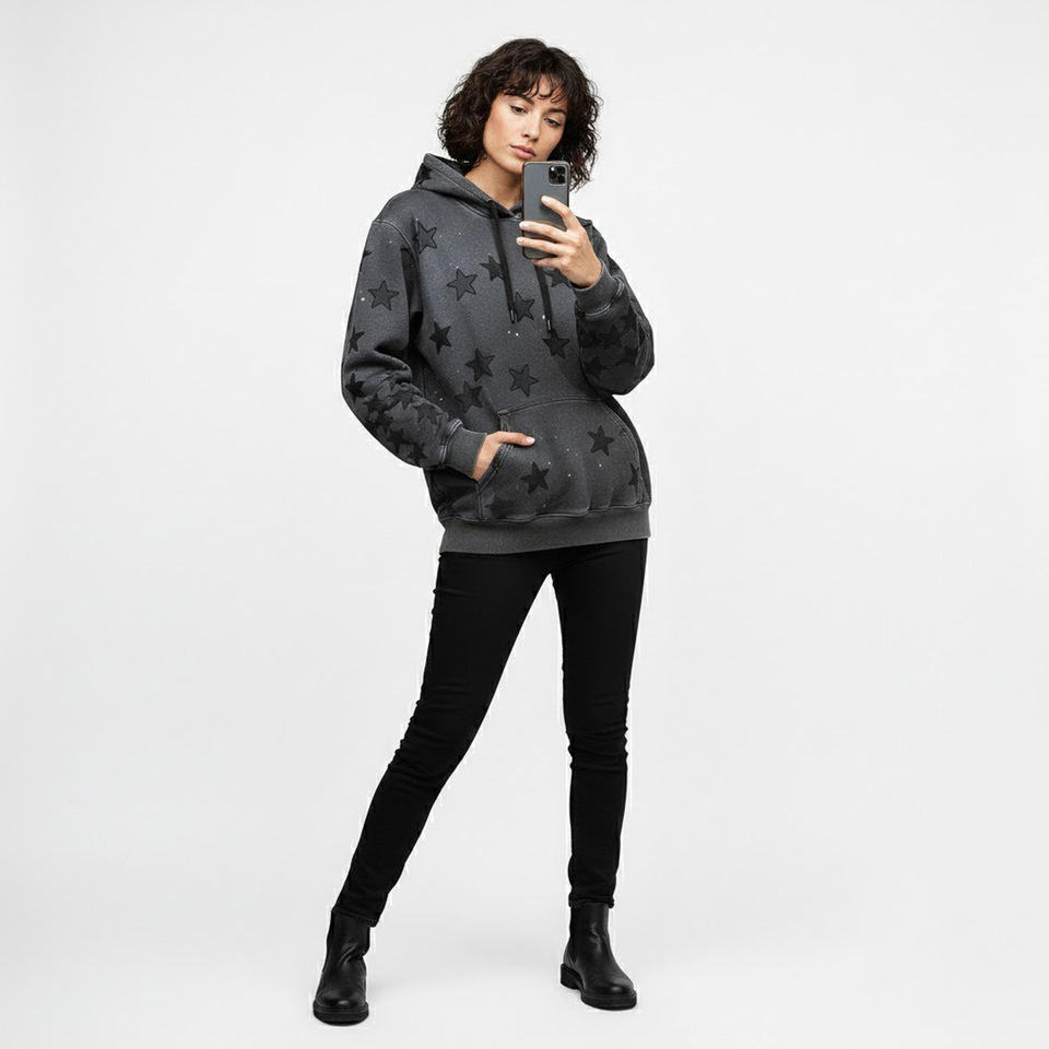 ชุดวอร์มพิมพ์โลโก้ตามสั่ง ผ้าฟลีซเนื้อหนัก 100% คอตตอน ทรงดรอปโชว์เดอร์ สำหรับขายส่ง