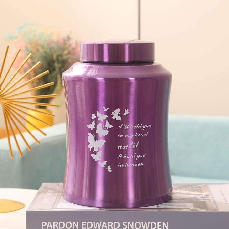 โกศน้ําหนักสูงสุด 160 ปอนด์สําหรับเถ้าผู้ใหญ่หญิง - โกศตกแต่งผีเสื้อผู้ใหญ่สําหรับงานศพ (ผีเสื้อสีม่วง 160 ลูกบาศก์นิ้ว)