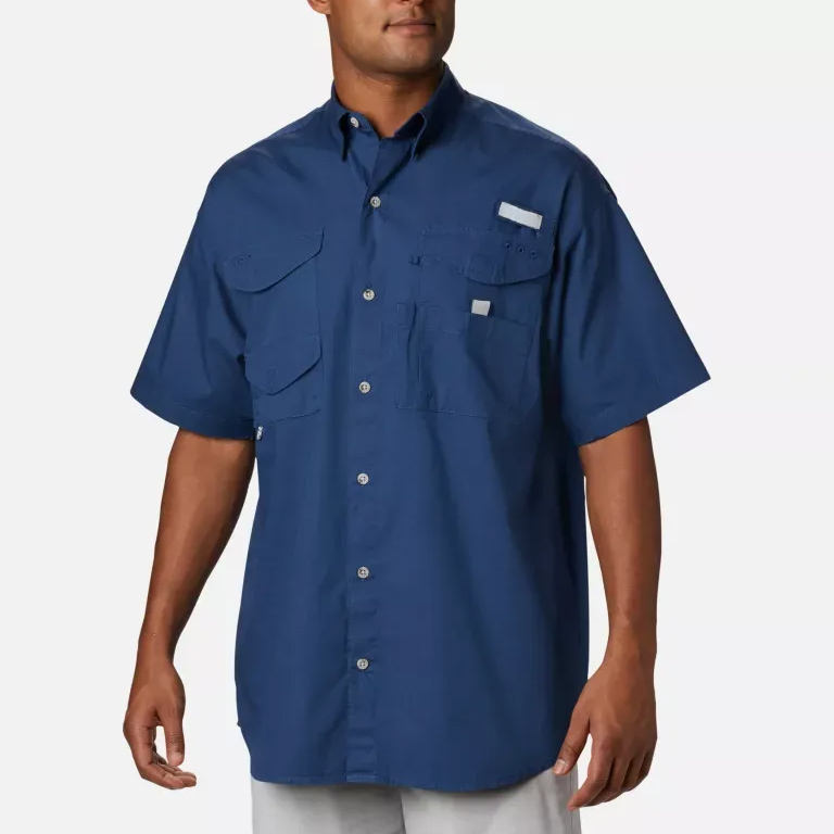 เสื้อโปโลผ้าเจอร์ซีย์ไนลอนสีพื้นลายทางสีแดงลายปลาคอรัลทรูท ยี่ห้อ Upf ประเทศกัวเตมาลา คอปกปลา ทรงดรายฟิต ติดกระดุม สำหรับตกปลา