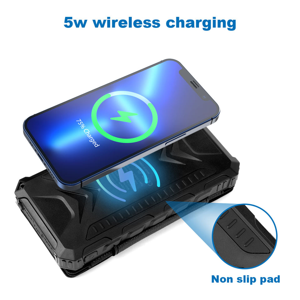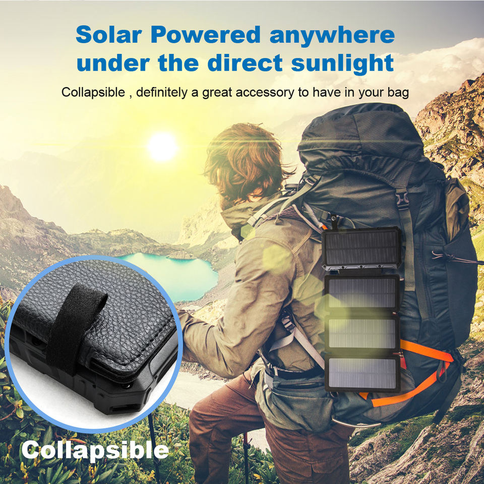 ที่ชาร์จมือถือแบบพกพาอเนกประสงค์ รุ่นอัพเกรด ชนิด Type C พร้อมแผงโซลาร์เซลล์พับได้ ความจุ 20000mAh สำหรับใช้งานกลางแจ้ง