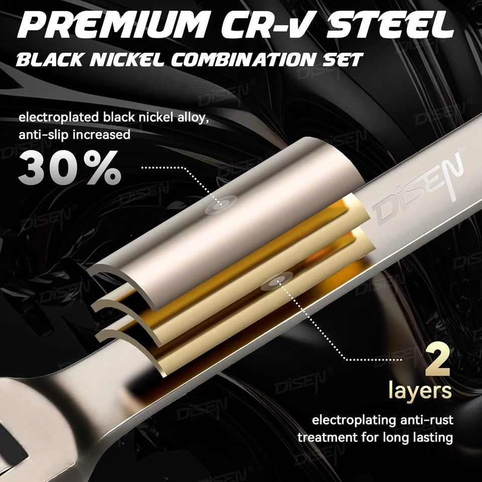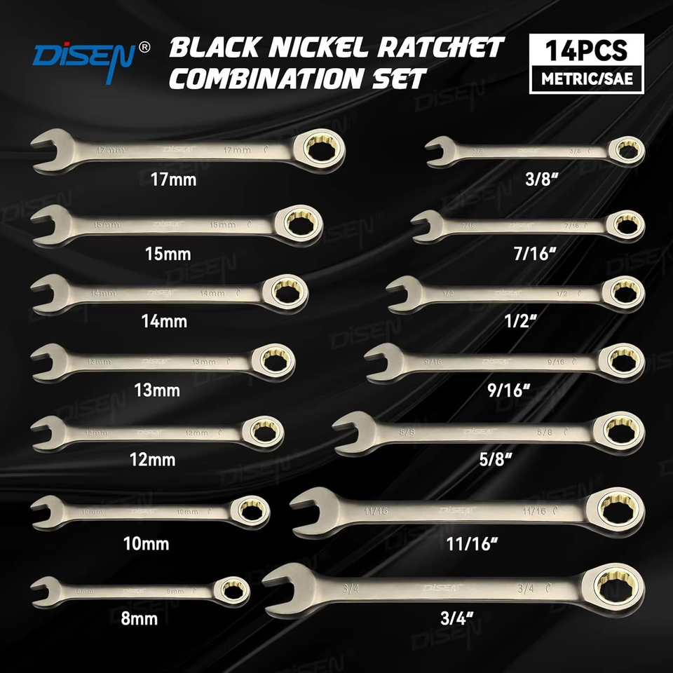 ชุดประแจวงล้อและเมตริก14ชิ้น90ฟัน90ซี่ชุบนิกเกิลเกรดอุตสาหกรรม