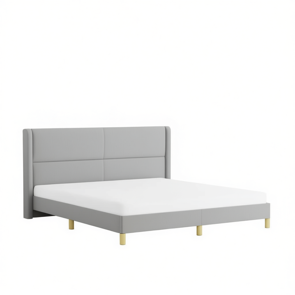 โครงเตียงหุ้มผ้าพร้อมหัวเตียง ผ้าสีเทาอ่อน ดีไซน์เรียบง่ายทันสมัย ขนาดควีนไซส์