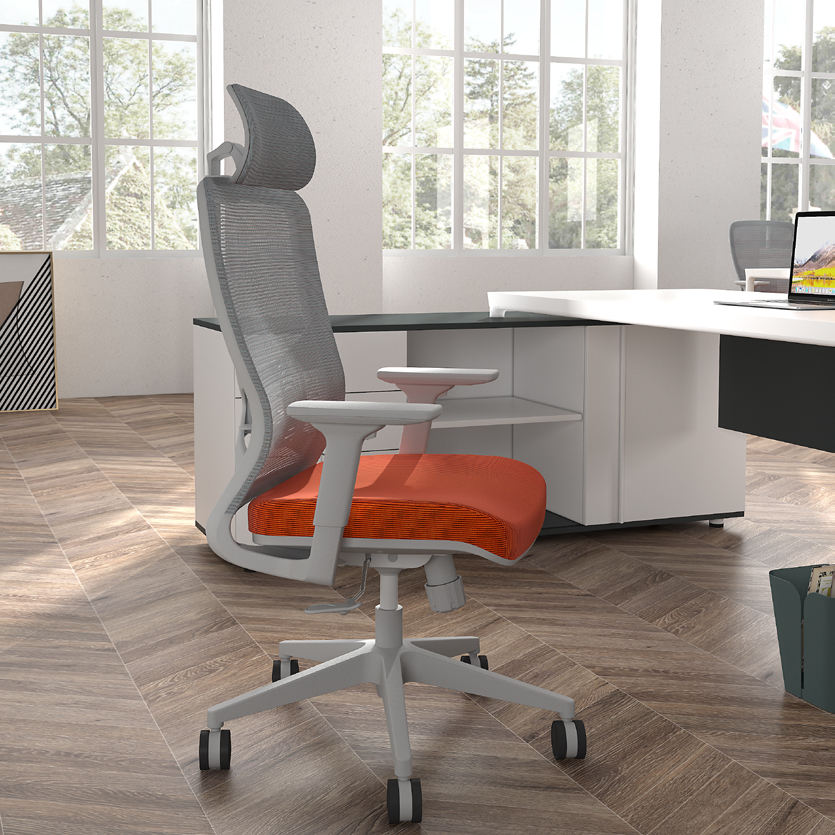 เก้าอี้สำนักงานหมุนได้ตามหลักสรีรศาสตร์แบบทันสมัยสำหรับผู้บริหารผู้จัดการเบาะรองศีรษะปรับได้เก้าอี้ตาข่ายหุ้มเบาะ