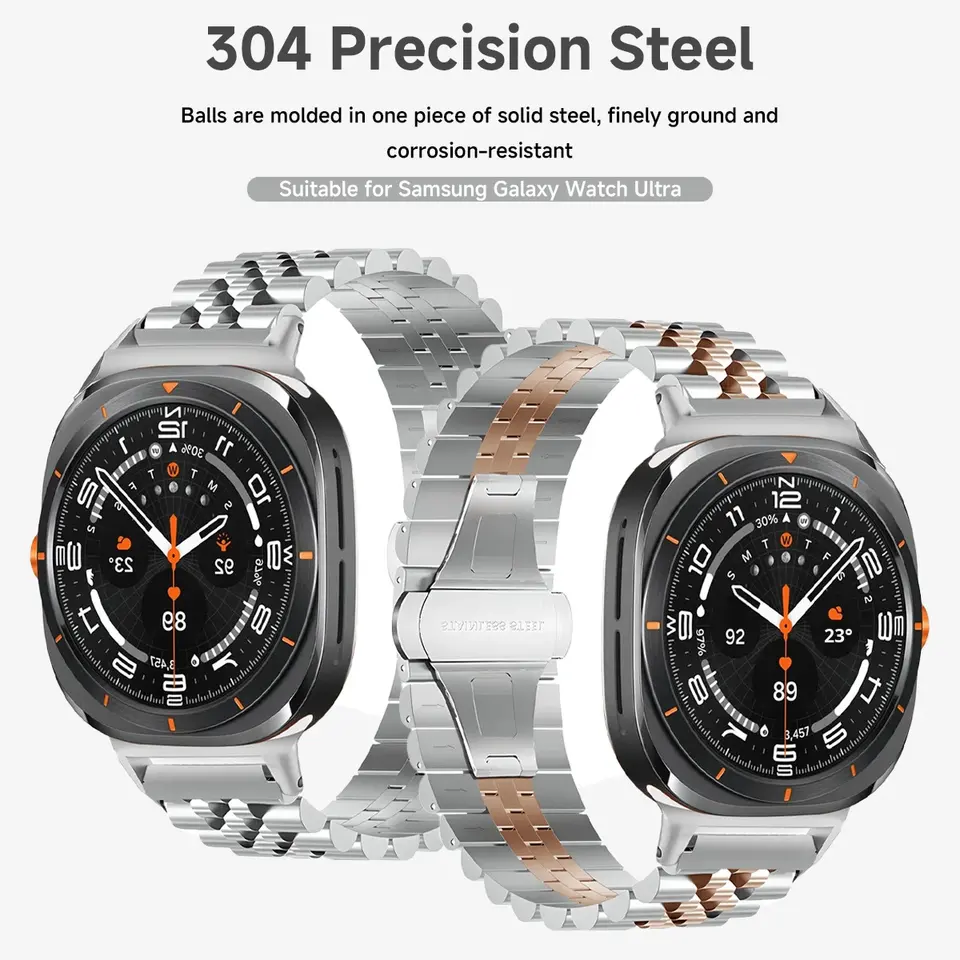 สายนาฬิกาสแตนเลสสตีล Upro ขนาด 47 มม. แบบ 5 เม็ด พร้อมตัวล็อคแบบผีเสื้อ สายสำรองสำหรับนาฬิกา Galaxy Watch Ultra 47 มม.
