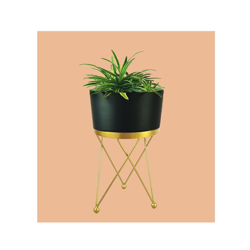 ที่วางกระถางต้นไม้โลหะสีดำสีทองหรูหราสำหรับตกแต่งบ้านในร่มที่ใส่กระถางดอกไม้หลายใบสำหรับตกแต่งสวนตกแต่งโถงทางเดิน