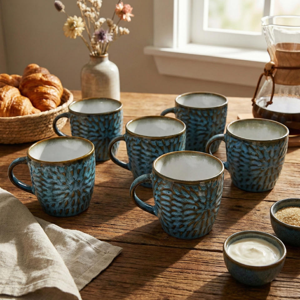 ชุดถ้วยชาเซรามิกโมเสคสีน้ำเงินยูเครน 6 ใบ - สำหรับเป็นของขวัญ