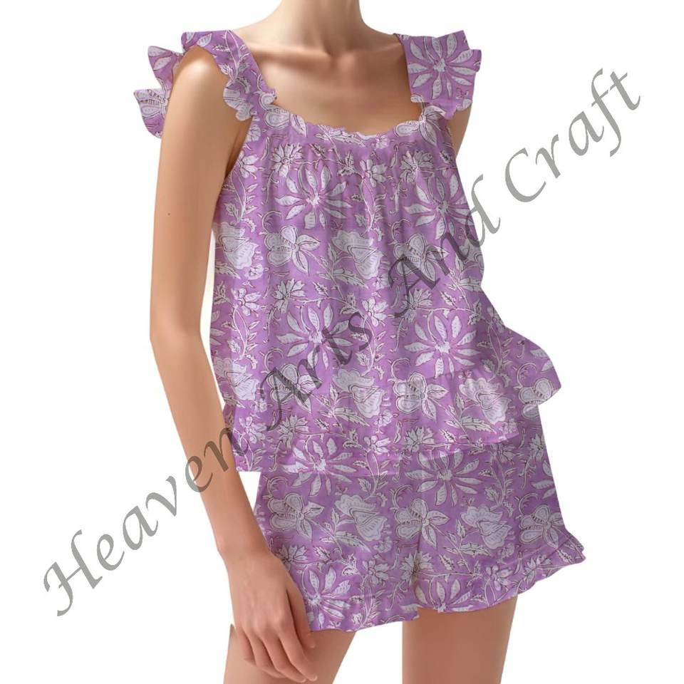 ชื่อผลิตภัณฑ์:ชุดนอนผ้าฝ้าย100% พิมพ์ลายมีระบาย