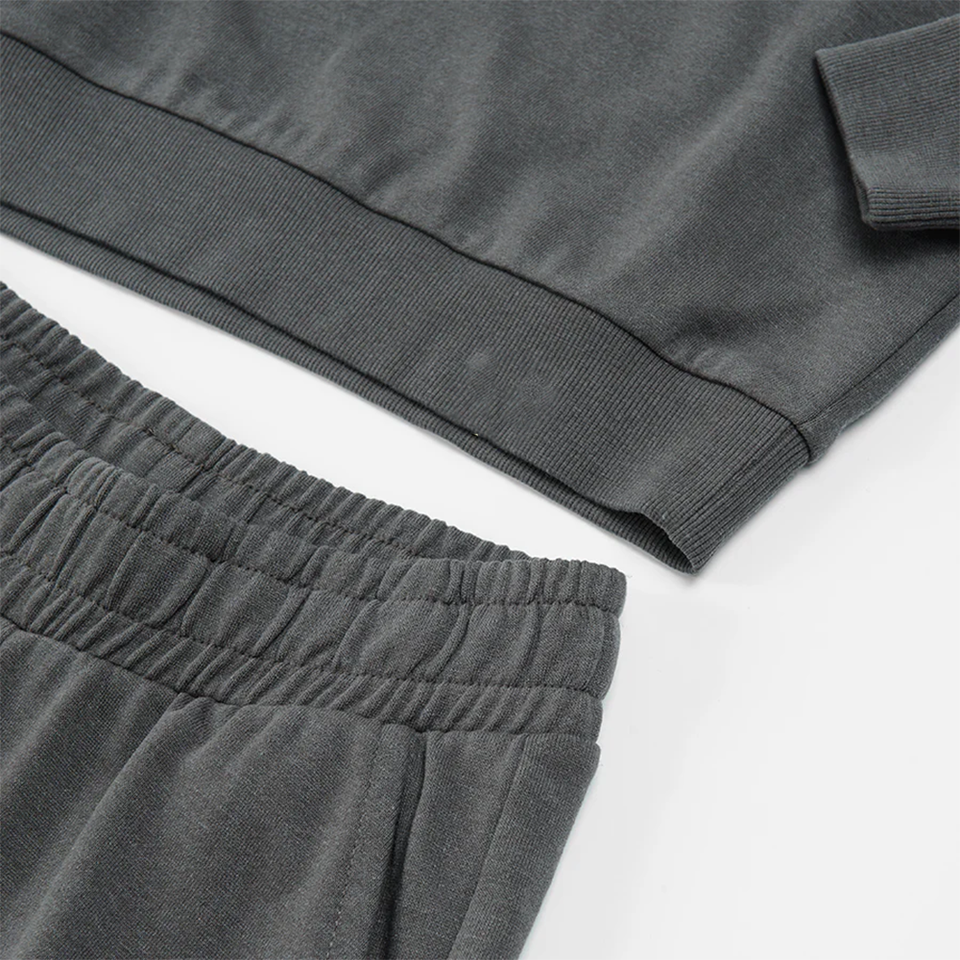 ชุดวอร์มผู้ใหญ่ Urban Core สีเทาเข้ม 2 ชิ้น พรีเมียม ผ้าฝ้าย 100% เสื้อสเวตเชิ้ตแสนสบาย กางเกงเอวยางยืด ปลายแขนจั๊มพ์ ลำลอง