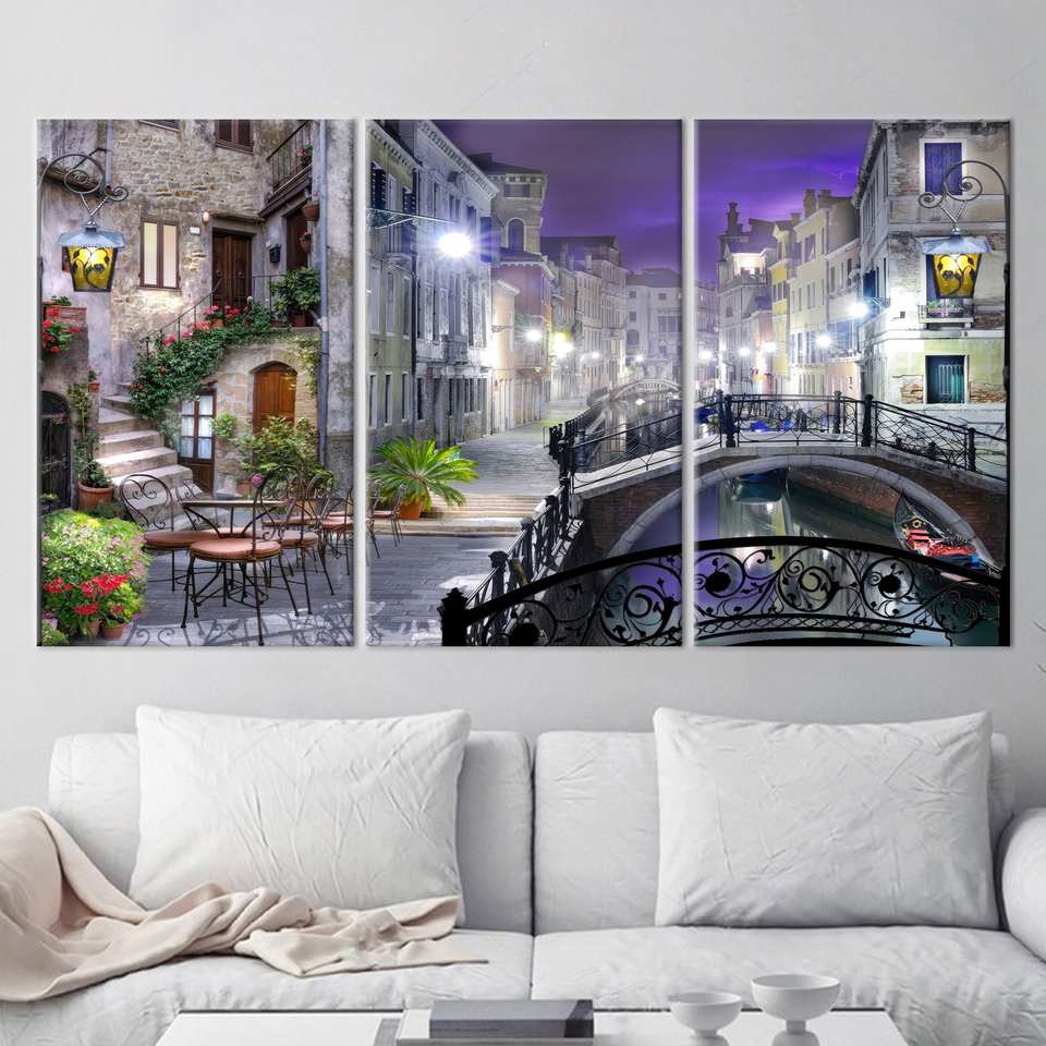 ความสง่างามในเมือง: ภาพพิมพ์บนผ้าใบลายทิวทัศน์เมืองสมัยใหม่สำหรับตกแต่งบ้าน,3P: ห่อหุ้มอย่างดี