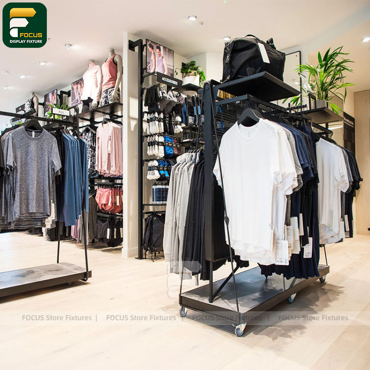 ชั้นวางเสื้อผ้าบูติกแฟชั่นในเมือง เคาน์เตอร์เสื้อผ้า ตู้เสื้อผ้า ตู้โชว์กระจก เฟอร์นิเจอร์ร้านค้าปลีก