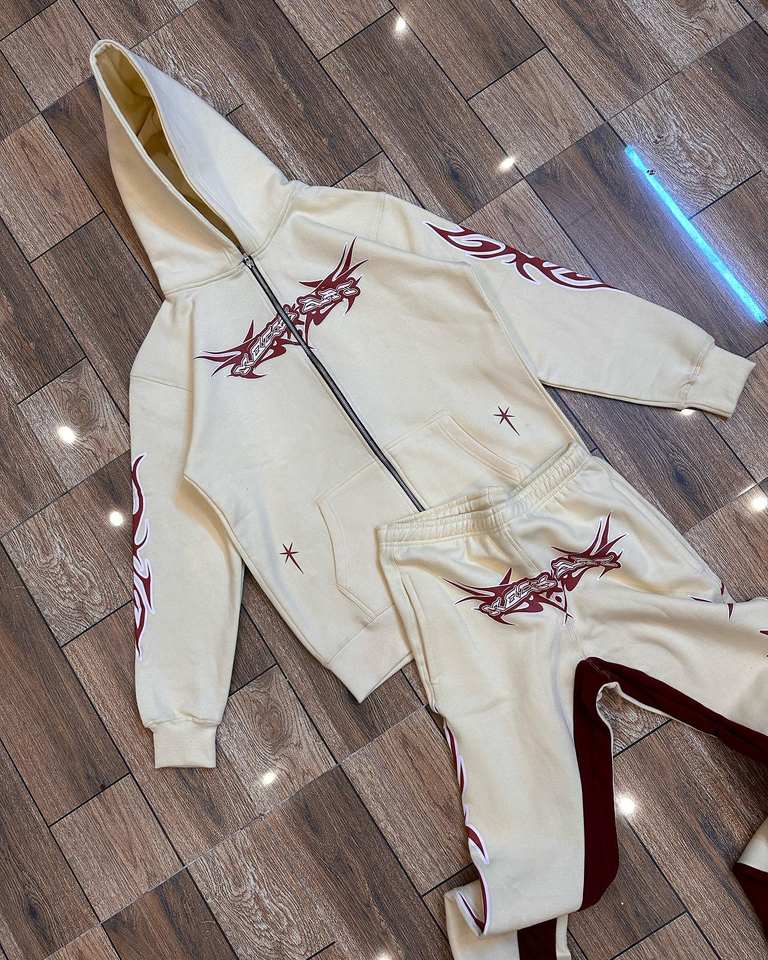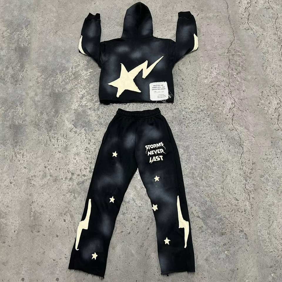 ชุดสเวตสูทแฟชั่นแนวสตรีท ปักลายปะติด พร้อมฮู้ดดี้พิมพ์ลายสกรีน กางเกงขาบาน