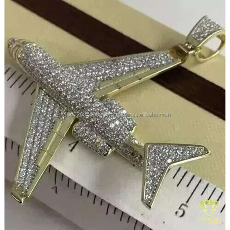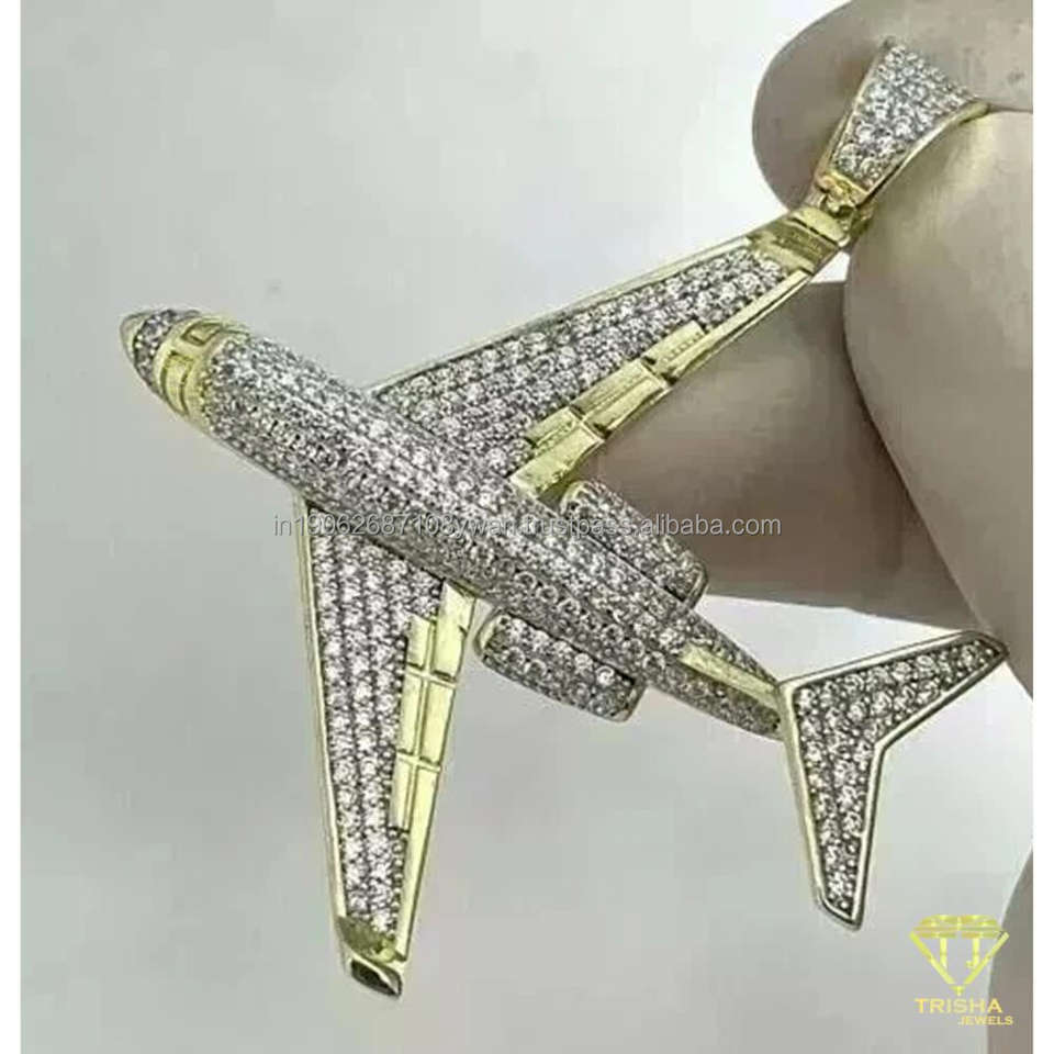 จี้เครื่องบินสไตล์ฮิปฮอปสำหรับคนเมือง ประดับเพชรโมอิสซาไนต์ VVS เงินแท้ 925 รับรองโดย GIA สำหรับทุกเพศ มีตัวเลือกการชุบเคลือบหลายแบบ