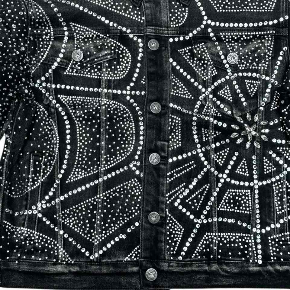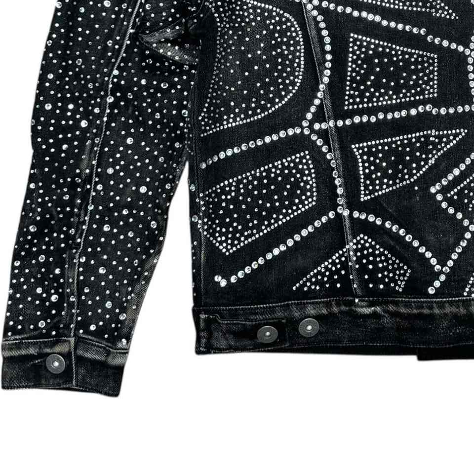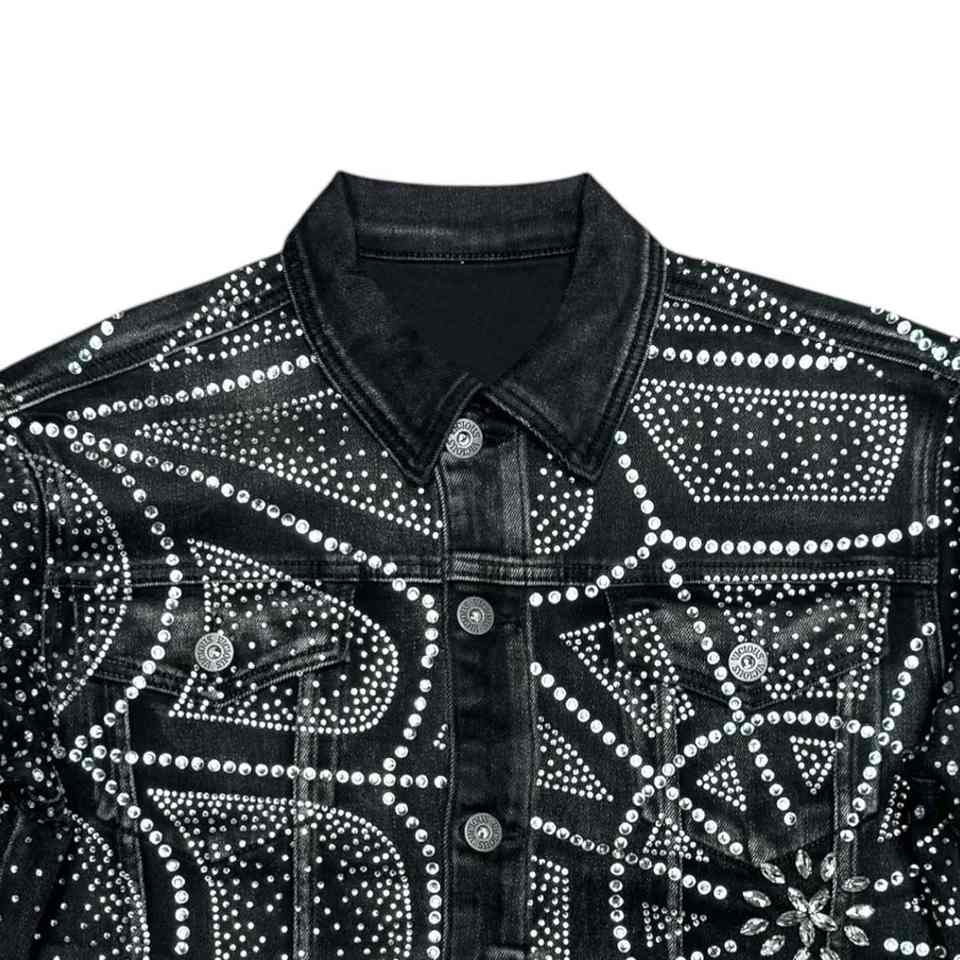 เสื้อแจ็คเก็ตยีนส์ประดับเพชร สไตล์ลำลอง เท่ห์ๆ สำหรับผู้ชายในเมือง เหมาะสำหรับใส่ไปไนต์คลับ ตกแต่งด้วยคริสตัลหรูหรา
