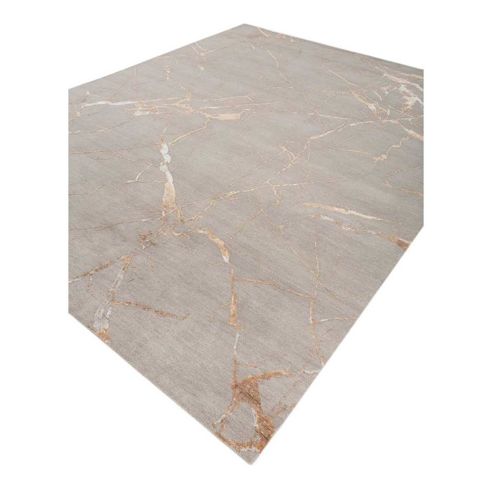 พรมขนสัตว์และไหมไผ่ Urban Pause รุ่น Kavi ลายกราฟิกสีเทาดำ ทอมือ สำหรับห้องนั่งเล่น ห้องนอน และทางเดิน-Esk-302