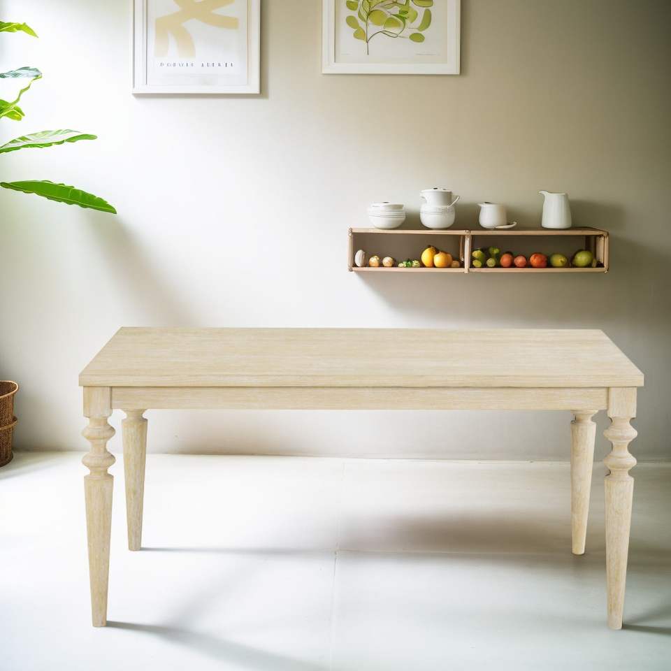 โต๊ะรับประทานอาหารสไตล์เมือง Urban Style รุ่น Amonia พร้อมพื้นผิวไม้สีขาวและขาแบบขึ้นรูปด้วยลวดลาย