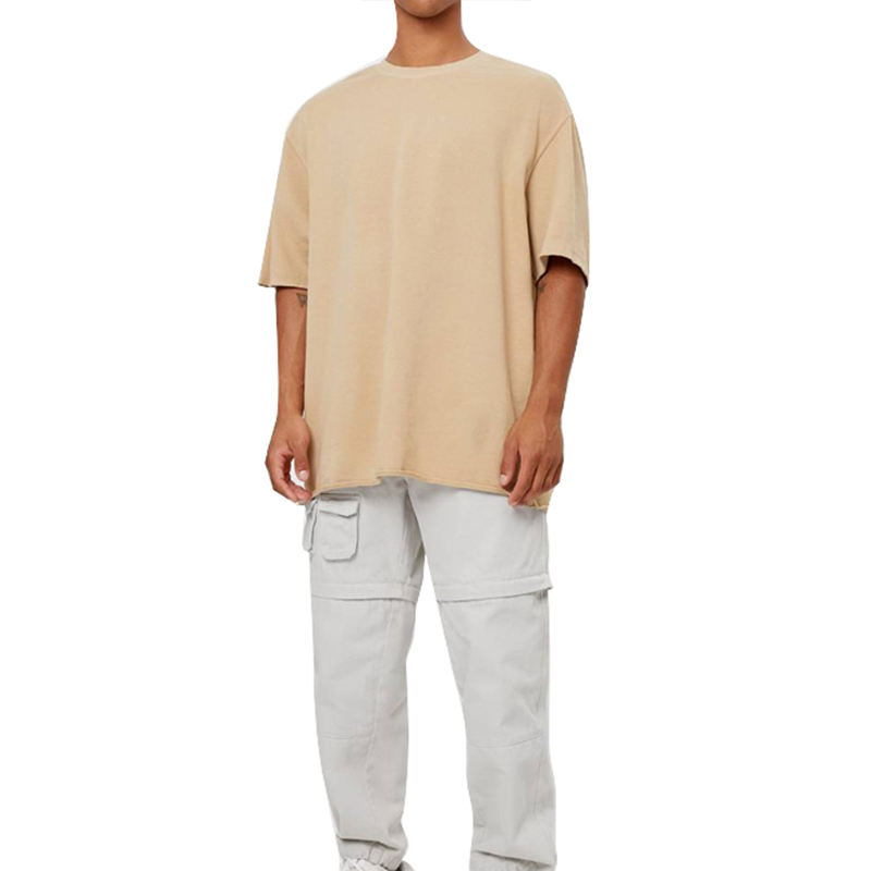 Urgear เสื้อยืดคอกลมสีเบจสำหรับผู้ชายสีพื้นผ้าฝ้ายสีเบจเสื้อยืดทรงหลวมแขนสั้น