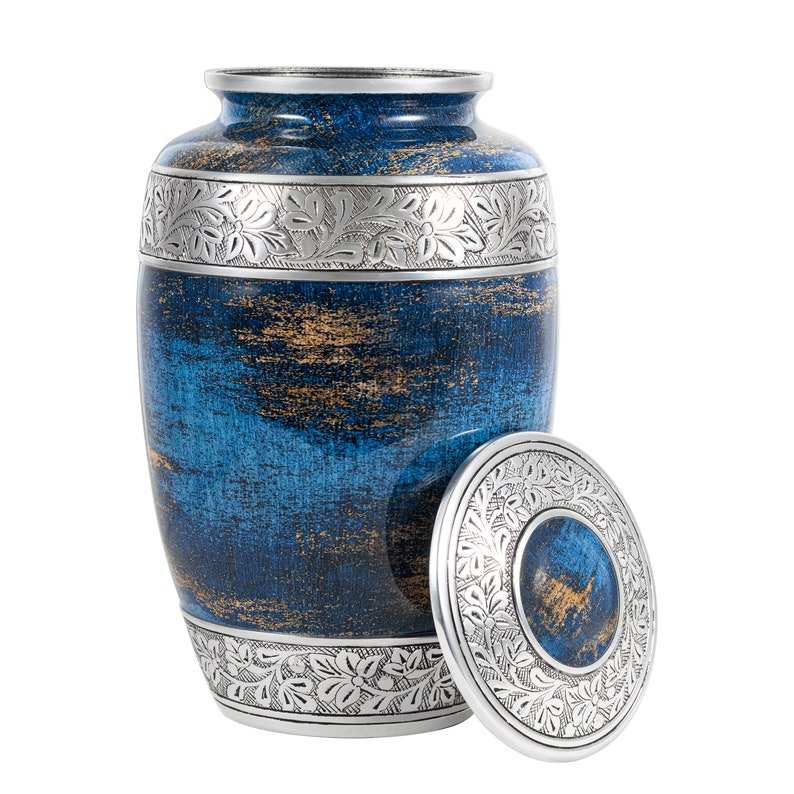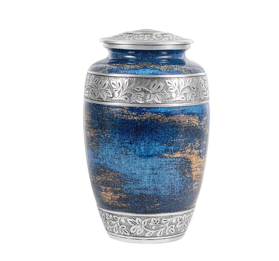 โกศสำหรับมนุษย์ขี้เถ้าเนื้อสีฟ้าคร่าวๆโกศเผาศพขนาดเต็มสำหรับผู้ใหญ่