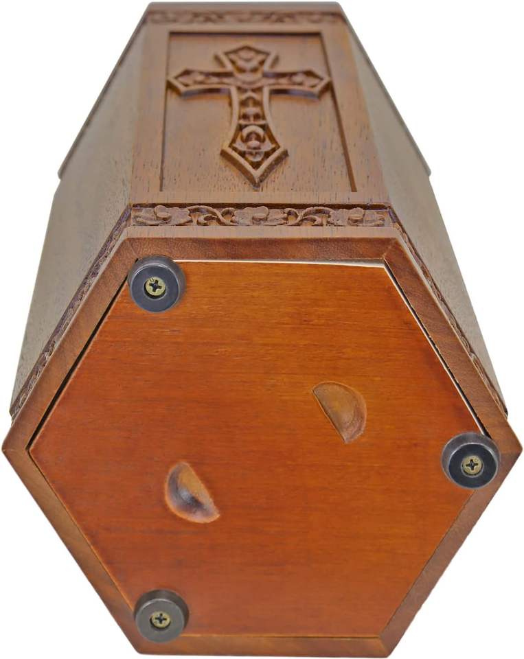 Urns สําหรับไม้เผาศพ Urn สําหรับเถ้ามนุษย์ผู้ใหญ่มือแกะสลักข้าม Urn งานศพสําหรับแม่พ่อจอแสดงผลฝังศพที่บ้าน