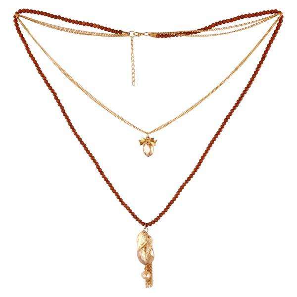 สร้อยคอโซ่คู่ของ Urthn 1109405A ลูกปัดไทเทเนียมสีน้ำตาลชุบทองรูปทรงเรขาคณิตรูปผีเสื้อไขว้กันไข่มุก