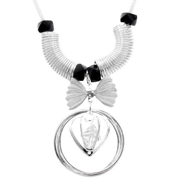 Urthn สร้อยคอลูกปัดดี1107718A ชุบเงินหินแก้วชิ้นใหญ่