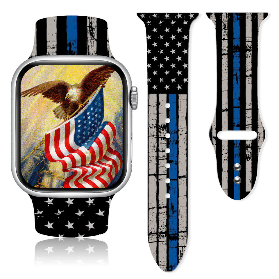 สายซิลิโคนพิมพ์ลายธงชาติอเมริกันสหรัฐอเมริกาสำหรับสายนาฬิกาแอปเปิ้ล38 40 41 42 44 45 49มม. สำหรับ iWatch ULTRA 2 SE 9 8 7 6 5