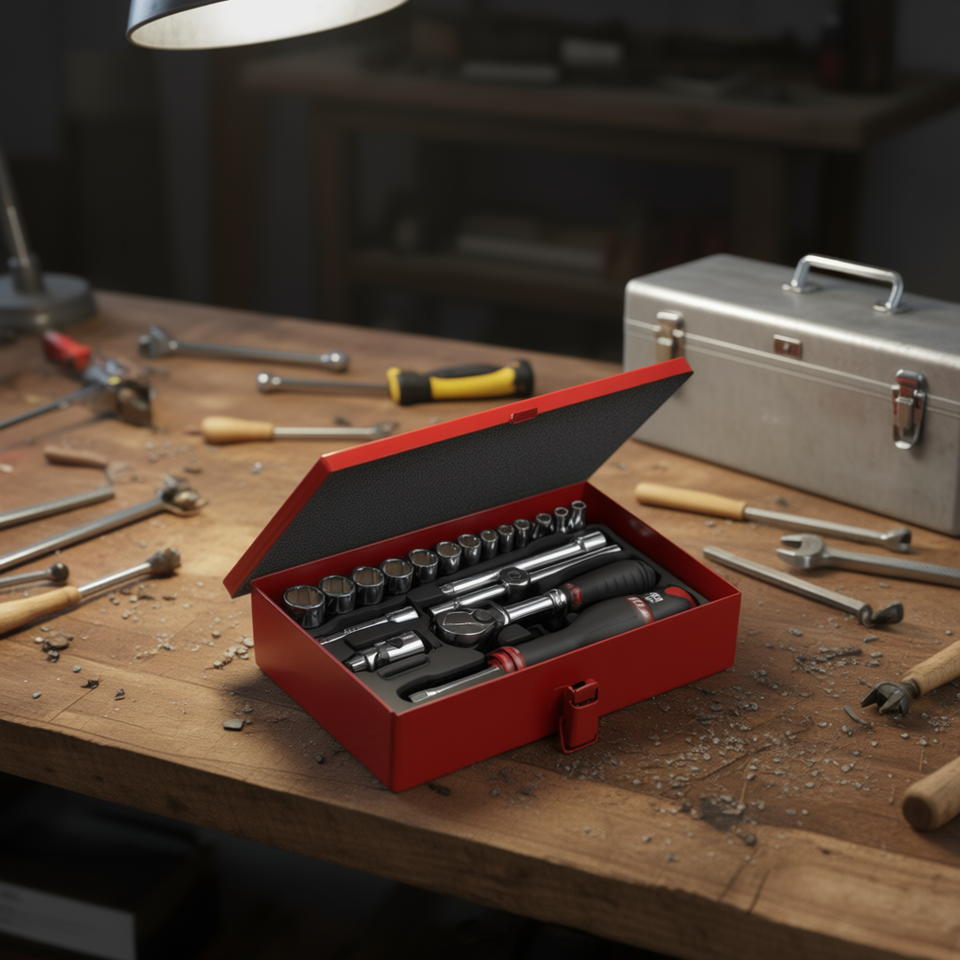 ชุดซ็อกเก็ตอเนกประสงค์ 19 ชิ้น ยี่ห้อ Usag ในกล่องเหล็กแผ่น พร้อมซ็อกเก็ตหกเหลี่ยม
