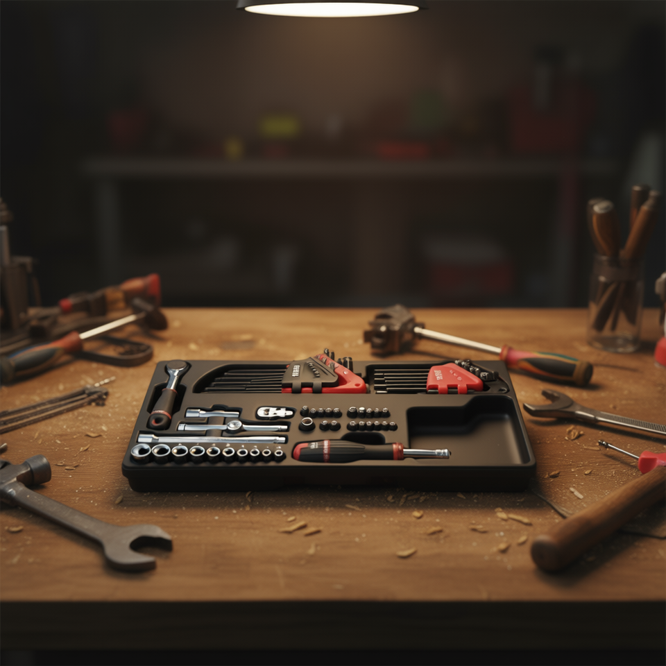 ชุดเครื่องมืออเนกประสงค์ในถาดพลาสติก 52 ชิ้น