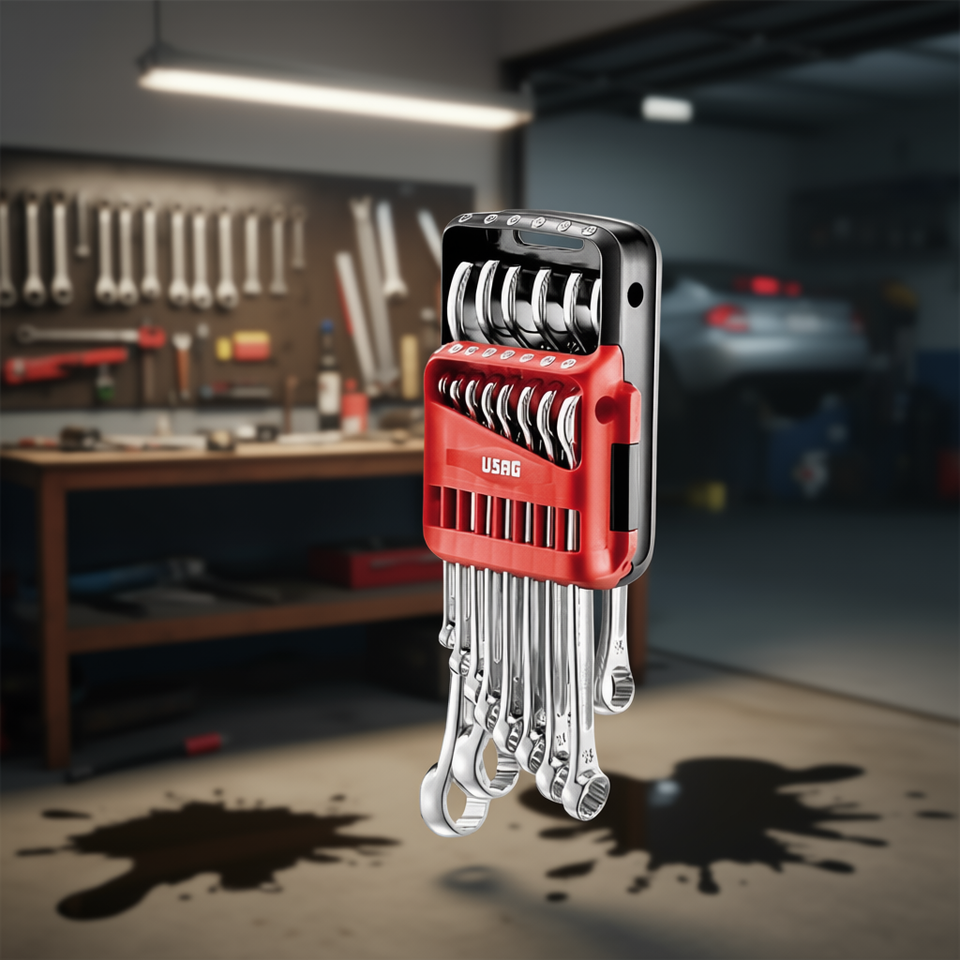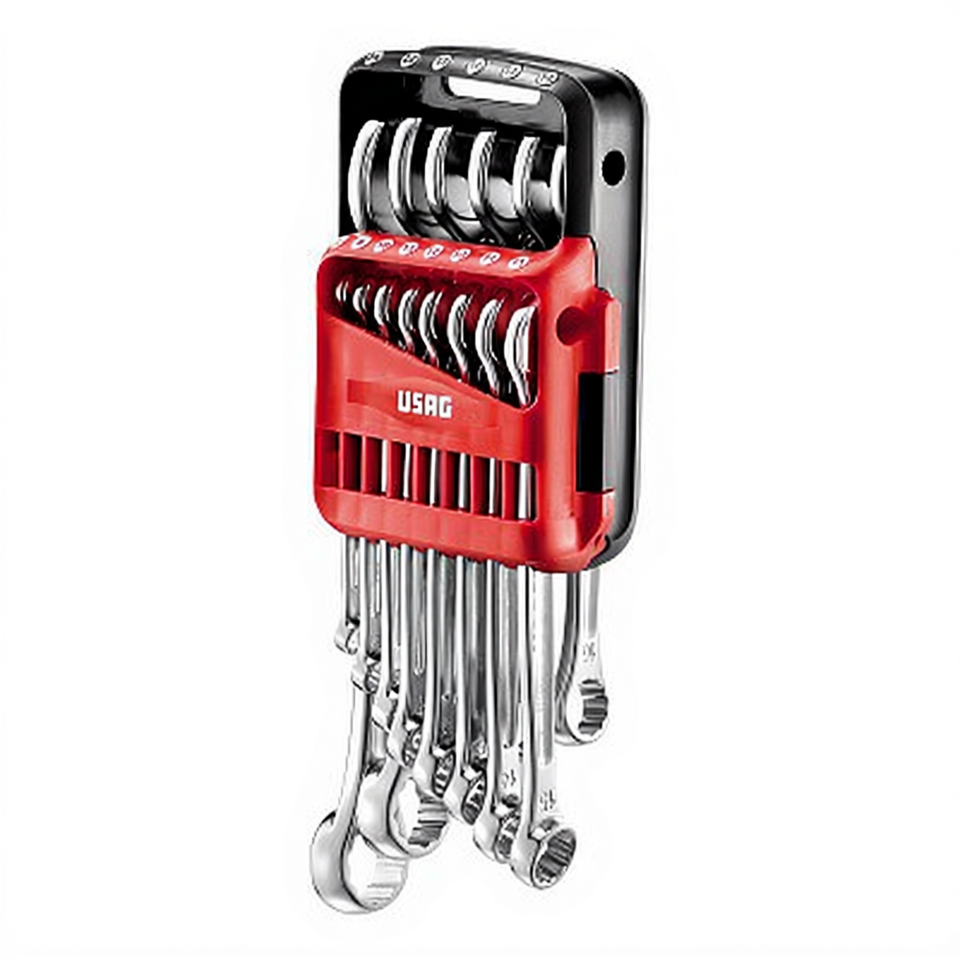 ชุดประแจปากตายและปากแหวนอุตสาหกรรมยี่ห้อ Usag แบบ 2 หัว 14 ชิ้น ชุดเครื่องมือเหล็กโครเมียมวาเนเดียม ขนาดเมตริก รับประกัน 3 ปี