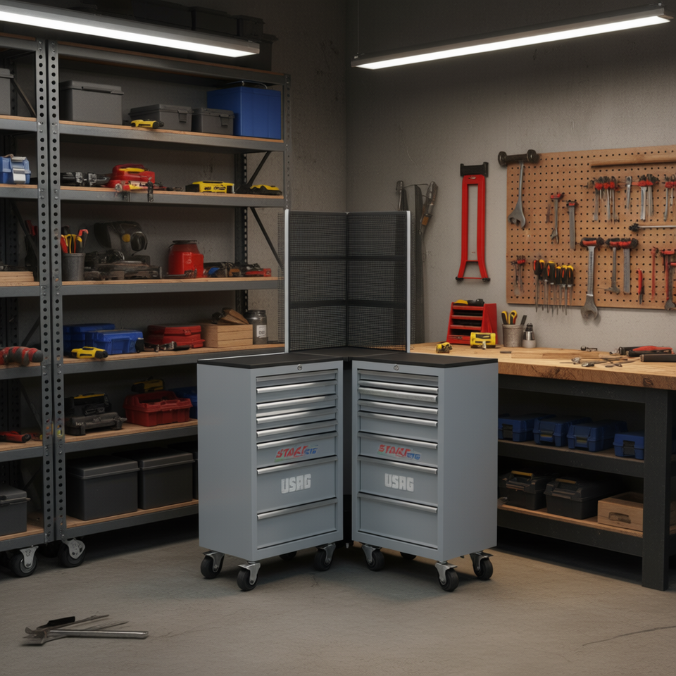 ชุดมุมแพลตฟอร์มชุบสังกะสียี่ห้อ Usag สำหรับตู้เก็บเครื่องมือเพื่อการจัดระเบียบและการจัดเก็บ