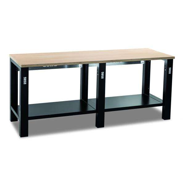 โต๊ะทำงานอุตสาหกรรมยี่ห้อ Usag พร้อมตู้เก็บเครื่องมือแบบมีฝาปิดทำจากไม้
