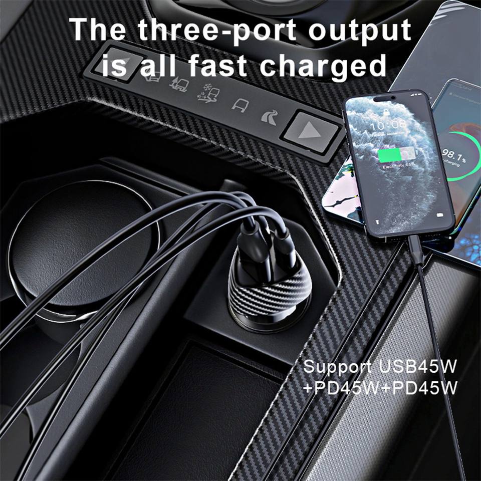 ที่ชาร์จในรถยนต์แบบ USB สายหดได้ รองรับ iPhone PD30W QC18W, ที่ชาร์จในรถยนต์แบบชาร์จเร็ว Type C พร้อมสาย 48W กำลังไฟสูง