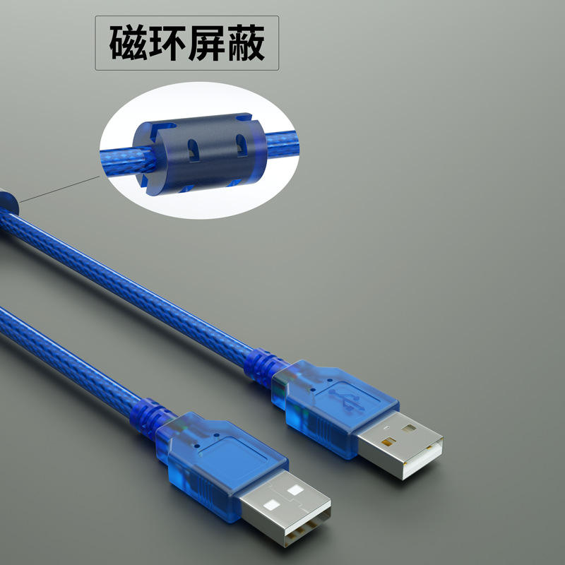 สายดาต้า USB ชายต่อชาย 2.0 สีฟ้าใส A/A ทองแดงทั้งเส้น หัวคู่ สำหรับกล่องใส่ฮาร์ดดิสก์คอมพิวเตอร์ พร้อมสาย USB สองเส้น