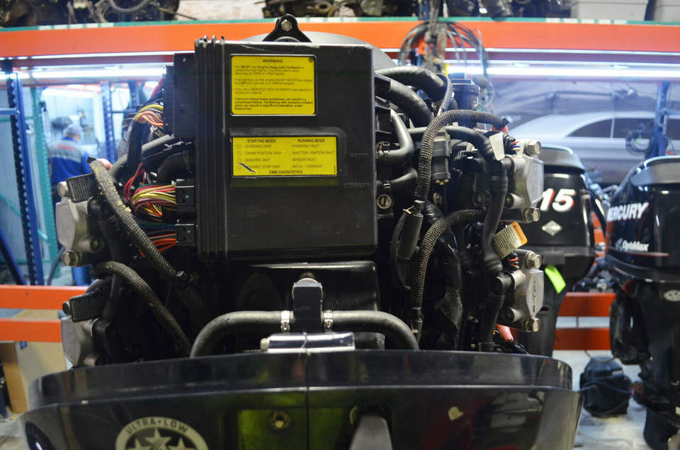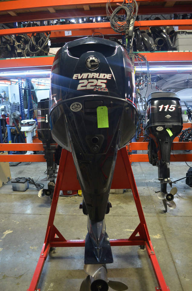 มอเตอร์ติดท้ายเรืออุตสาหกรรม ยี่ห้อ E-vi-nru-d-e รุ่น E-TEC 225 แรงม้า HO 2 จังหวะ 25 นิ้ว ปี 2015 รองรับการปรับแต่ง OEM ใช้งาน 310 ชั่วโมง