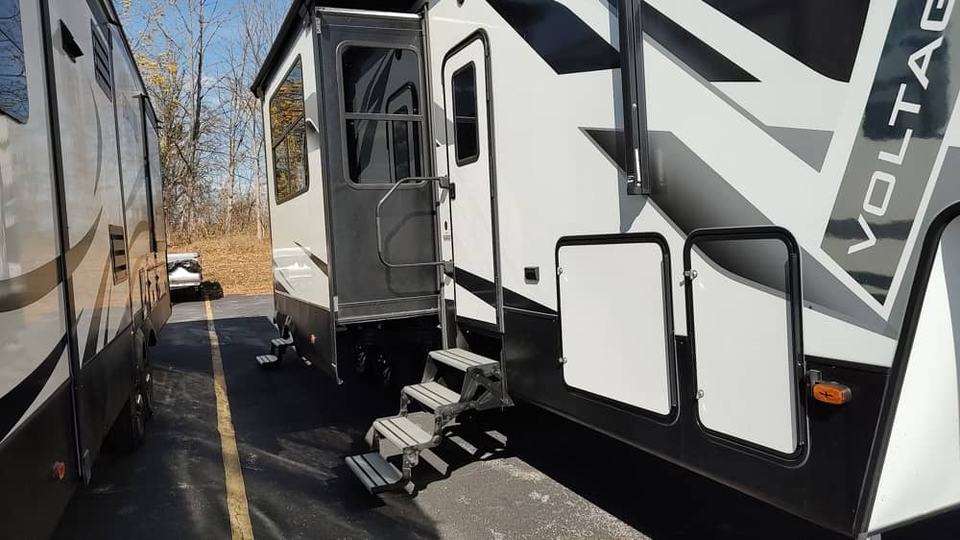 รถพ่วงเดินทางมือสองปี 2021 ยี่ห้อ Dutchmen Triton 3551 รถบ้านสมัยใหม่และรถพ่วงสำหรับเดินทางแบบออฟโรด