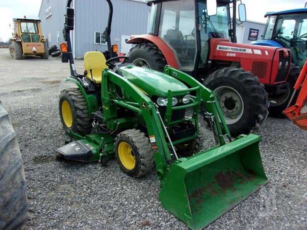 รถแทรกเตอร์จอห์นเดียร์ 2025R ขนาด 25 แรงม้า พร้อมเครื่องตัดหญ้า มือสองสำหรับขาย