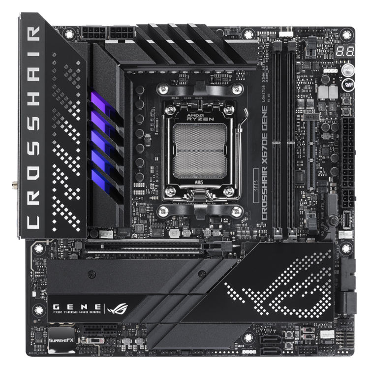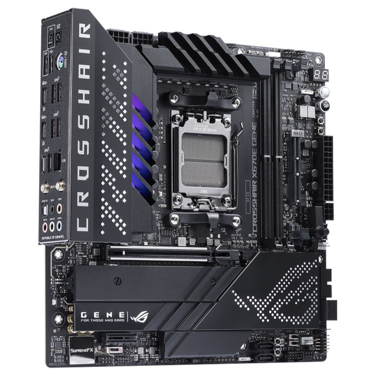 ใช้เมนบอร์ด X670E แบบ .sus ROG CROSSHAIR ที่มีชิปเซ็ต X670 AMD Ryzen 7000ซีรีส์เดสก์ท็อปซีพียู