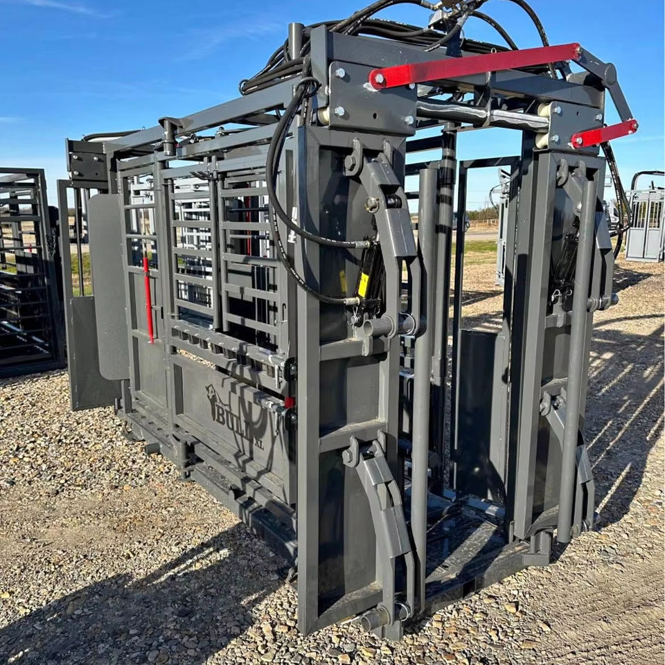 ใช้รางจับวัวไฮดรอลิกสีแดงขนาดใหญ่ พร้อมระบบการทำงาน ได้แก่ รางบีบและทางเดิน