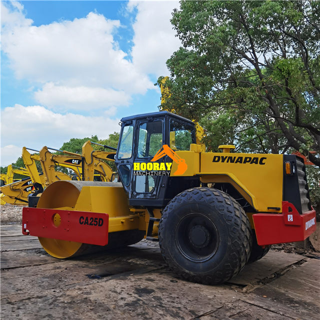 ใช้ลูกกลิ้ง CA25D dynapac กับลูกกลิ้งยางแบบสั่นแบบเดี่ยวซึ่งมีส่วนประกอบหลักของมอเตอร์ปั๊มเครื่องยนต์