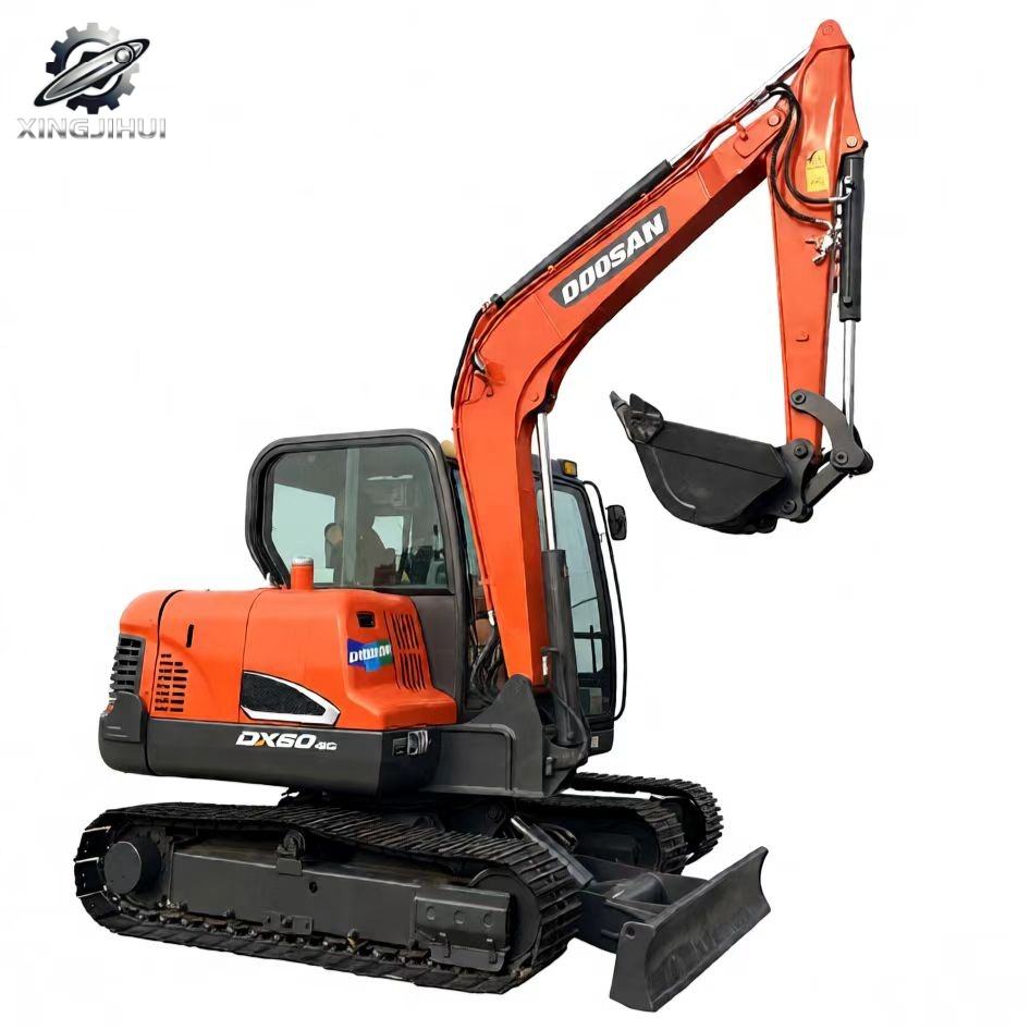 รถขุดตีนตะขาบ Doosan DX60 มือสอง ขนาด 6 ตัน บุ้งกี๋ 0.3 ลบ.ม. แบรนด์เกาหลีแท้ รถขุดขนาดเล็กสำหรับงานก่อสร้าง ชั่วโมงการทำงานต่ำ ได้รับการรับรองมาตรฐาน CE