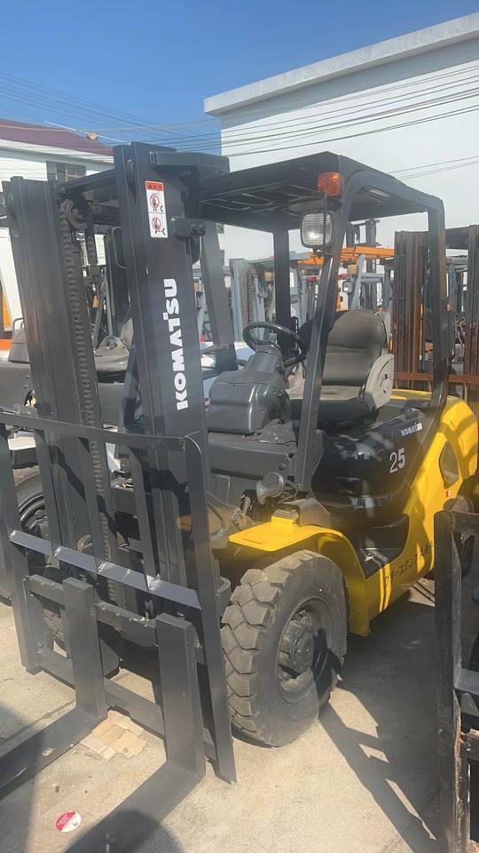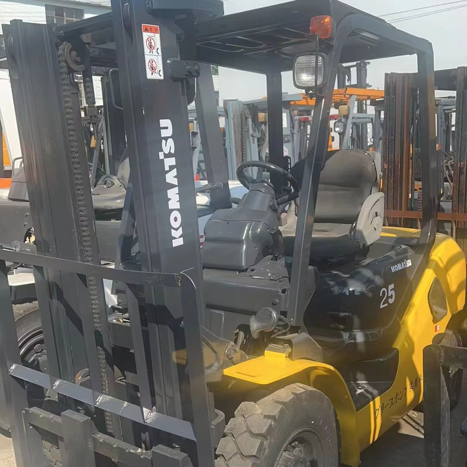 รถยกดีเซลโคมัตสึ FD25 2.5 ตัน สภาพดี พร้อมเสากระโดงแบบชั้นเดียว/สองชั้น/สามชั้น และรัศมีการเลี้ยว 1950 มม.