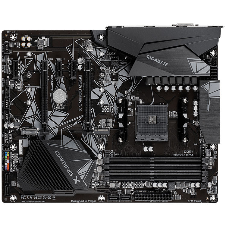 ใช้เมนบอร์ด GIGABYTE B550 GAMING X พร้อมซ็อกเก็ต AMD AM4 ชิปเซ็ต B550 รองรับโปรเซสเซอร์ Ryzen 3 5 7 9 3600XT 3700