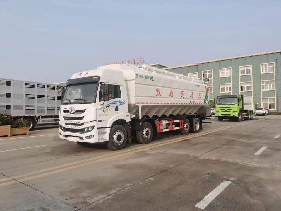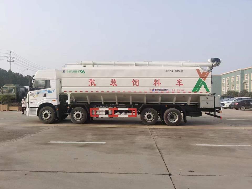 รถบรรทุกอาหารสัตว์ปีกจี๋ฟาง 8*4 ขนาด 40 ลูกบาศก์เมตร สำหรับขนส่งอาหารไก่